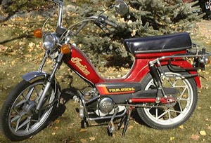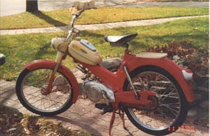 The first giant leap forward was the appearance of the Velosolex, a giant among the dwarfs. If you ever rode a Velo, either with its engine running or as a bicycle, you'll appreciate how well that entire machine was constructed. Originally equipped with a 33cc engine (later to grow to 42 then 49) it had a friction roller over the front wheel. You could engage-disengage the power with a lever. You had to help sometimes going uphill, but that was part of the experience.